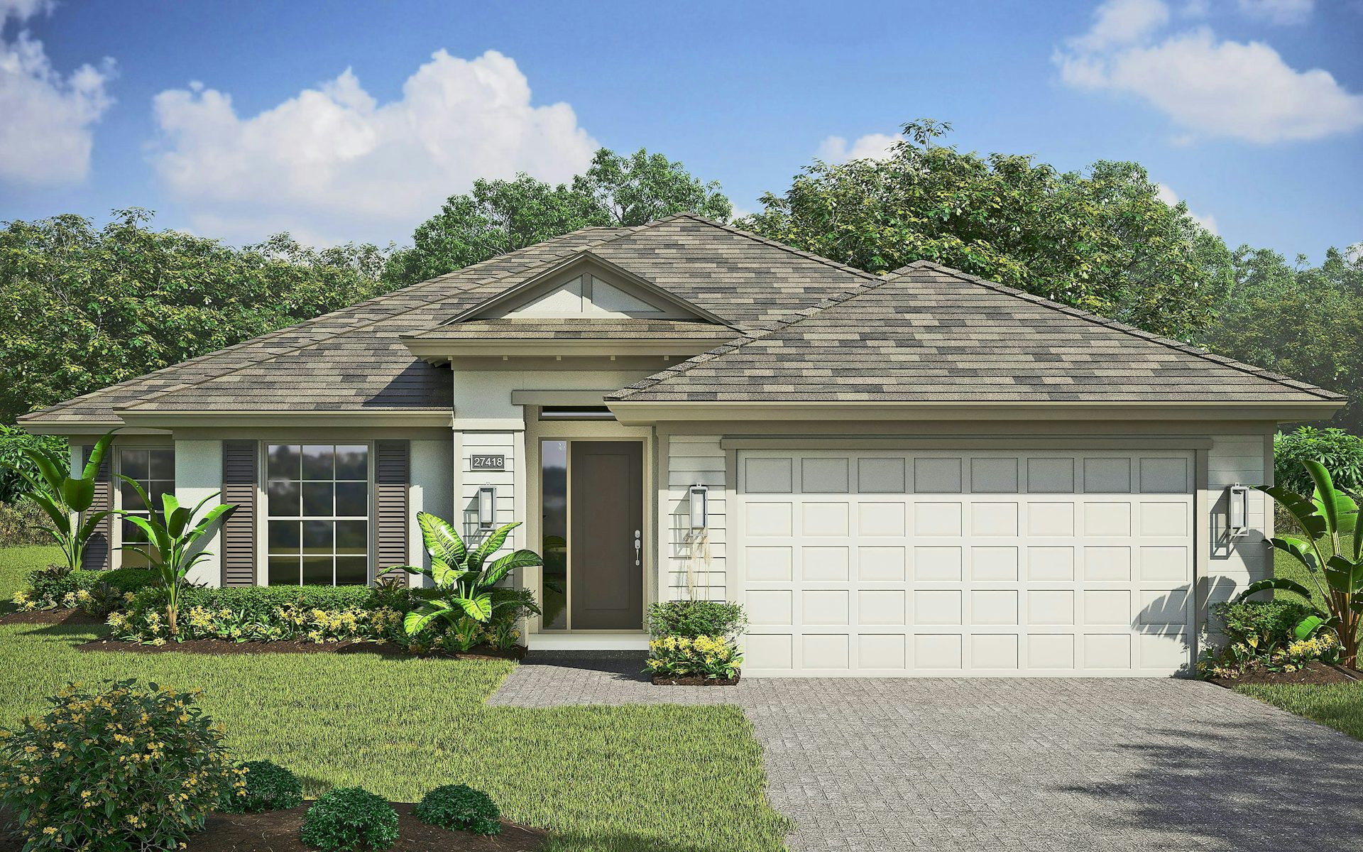 The Allura, a meticulously crafted 2-bedroom, den, 2 bath, 2-car garage home designed for unparalleled comfort and style. Past the foyer an expansive great room, kitchen, and dining area form the heart of the home. This inviting space is ideal for gatherings, featuring high ceilings, large windows that flood the area with natural light, and is welcoming. The kitchen is equipped with top-of-the-line appliances, ample counter space, and a large island that doubles as a breakfast bar. Quartz countertops, high-end cabinetry and modern fixtures add to the kitchen's appeal.