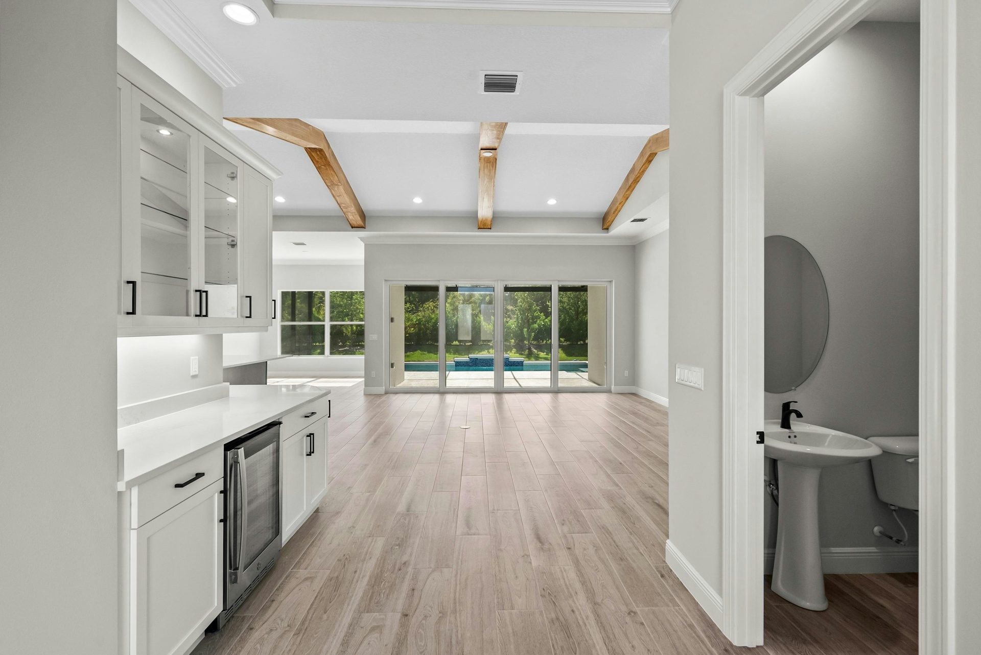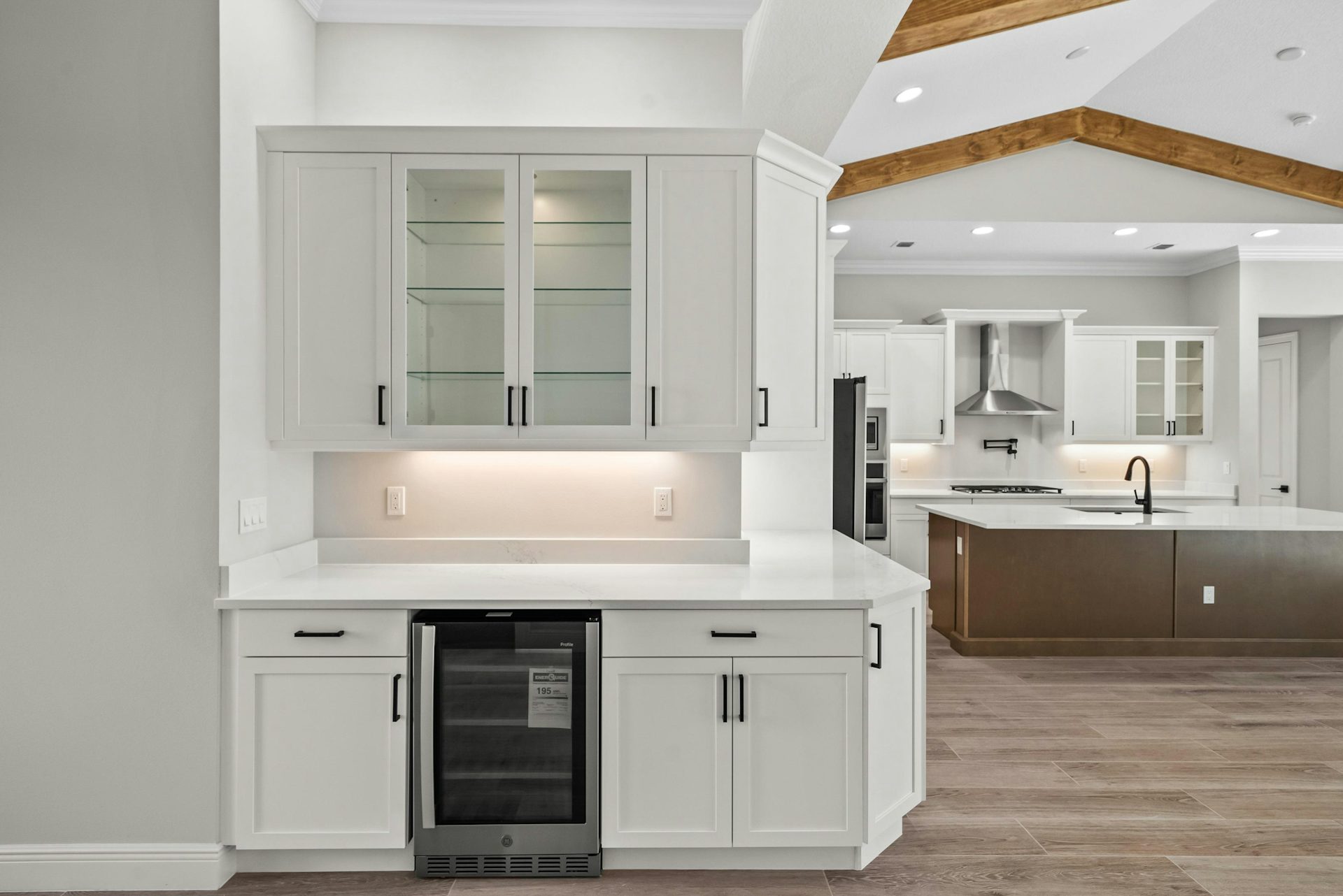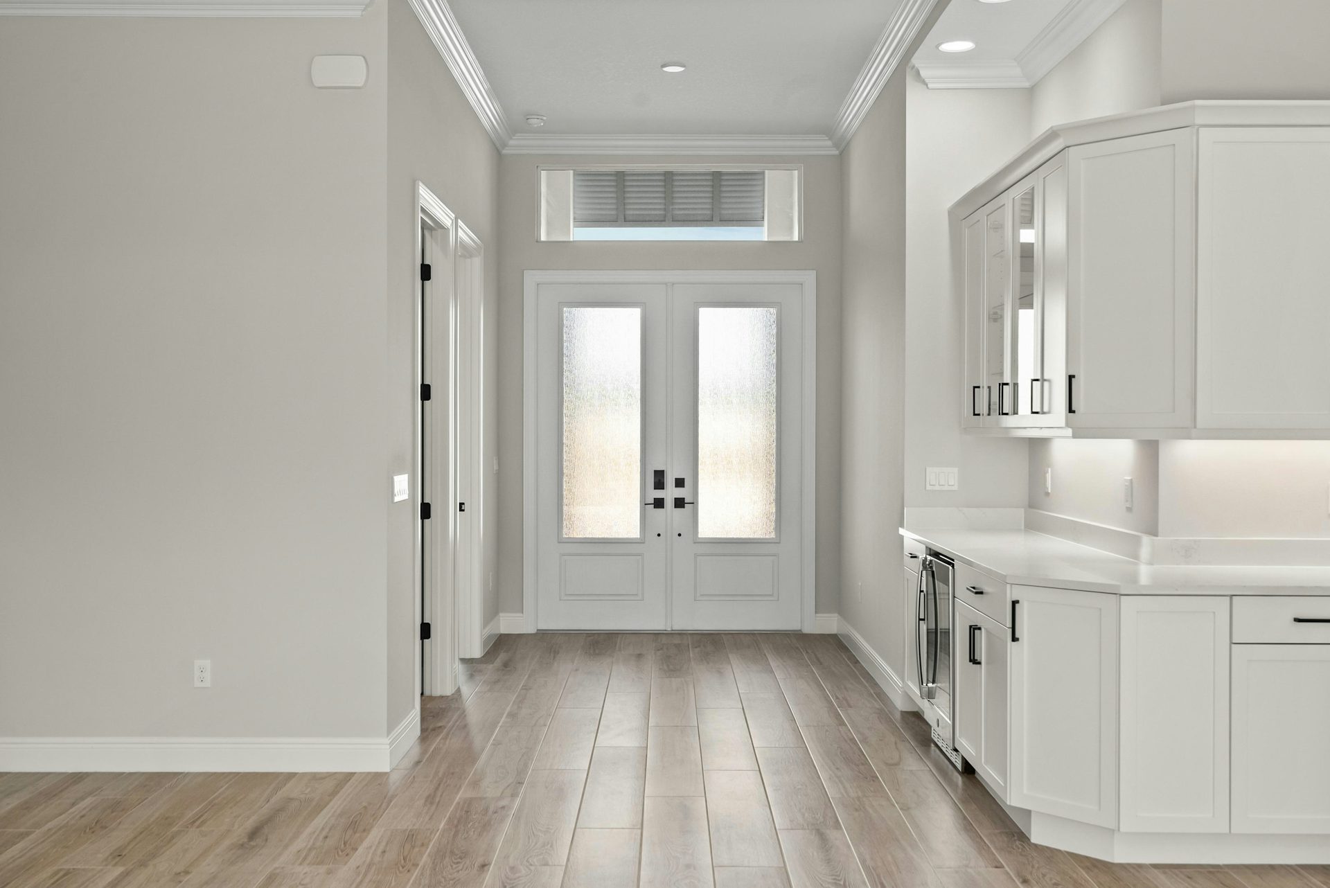The master suite boasts an impressive walk-in closet, dual vanities, and a spacious Roman shower. Combining comfort and elegance, this home is perfect for both refined living and sophisticated entertaining.