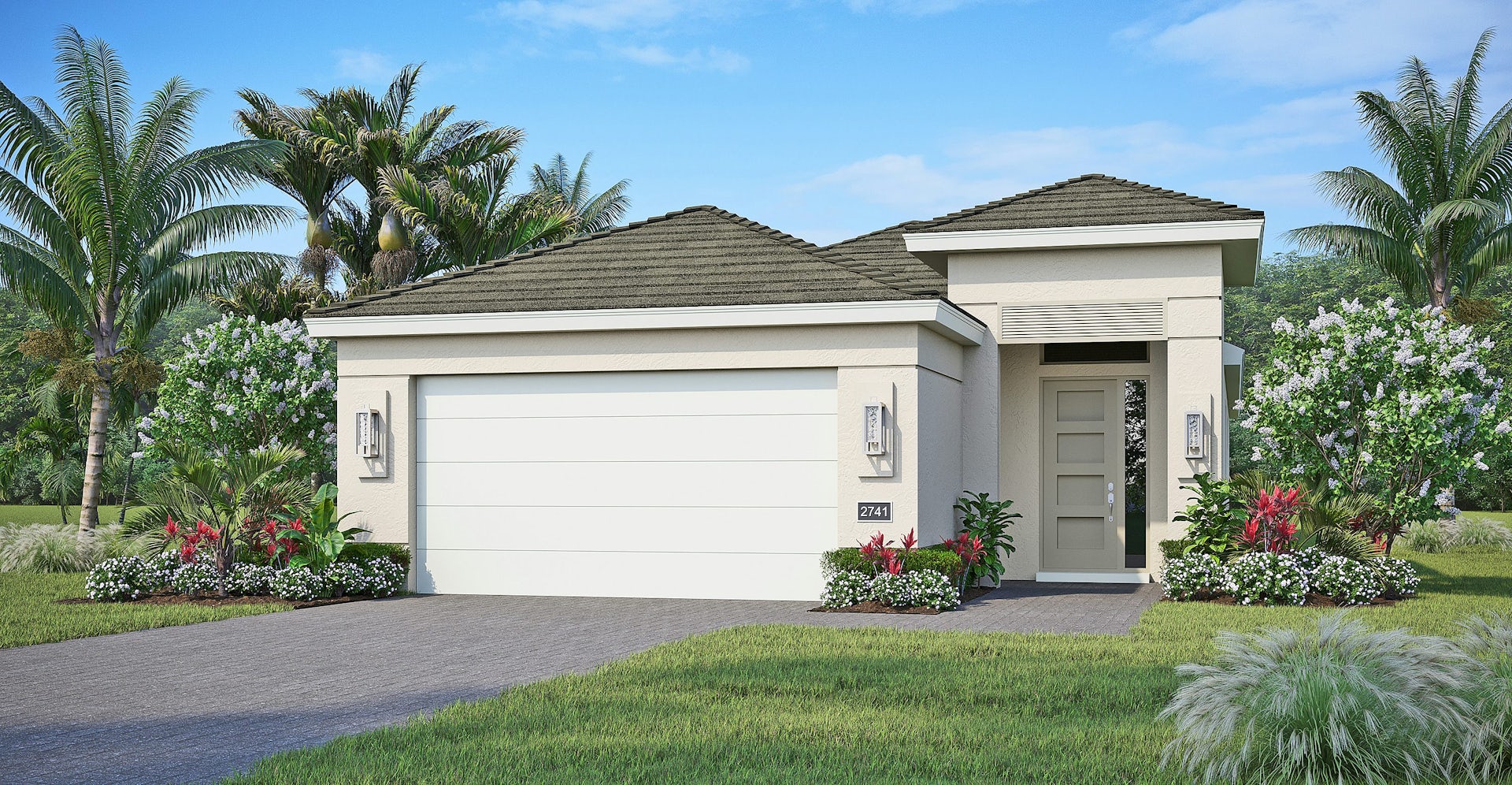 Located past the kitchen is the great room with a coffered ceiling and lots of natural light from the windows and slider, which opens to the lanai. The master suite, located at the rear of the home, includes a walk-in closet and a beautifully appointed en-suite bathroom with dual vanities and a walk-in shower.