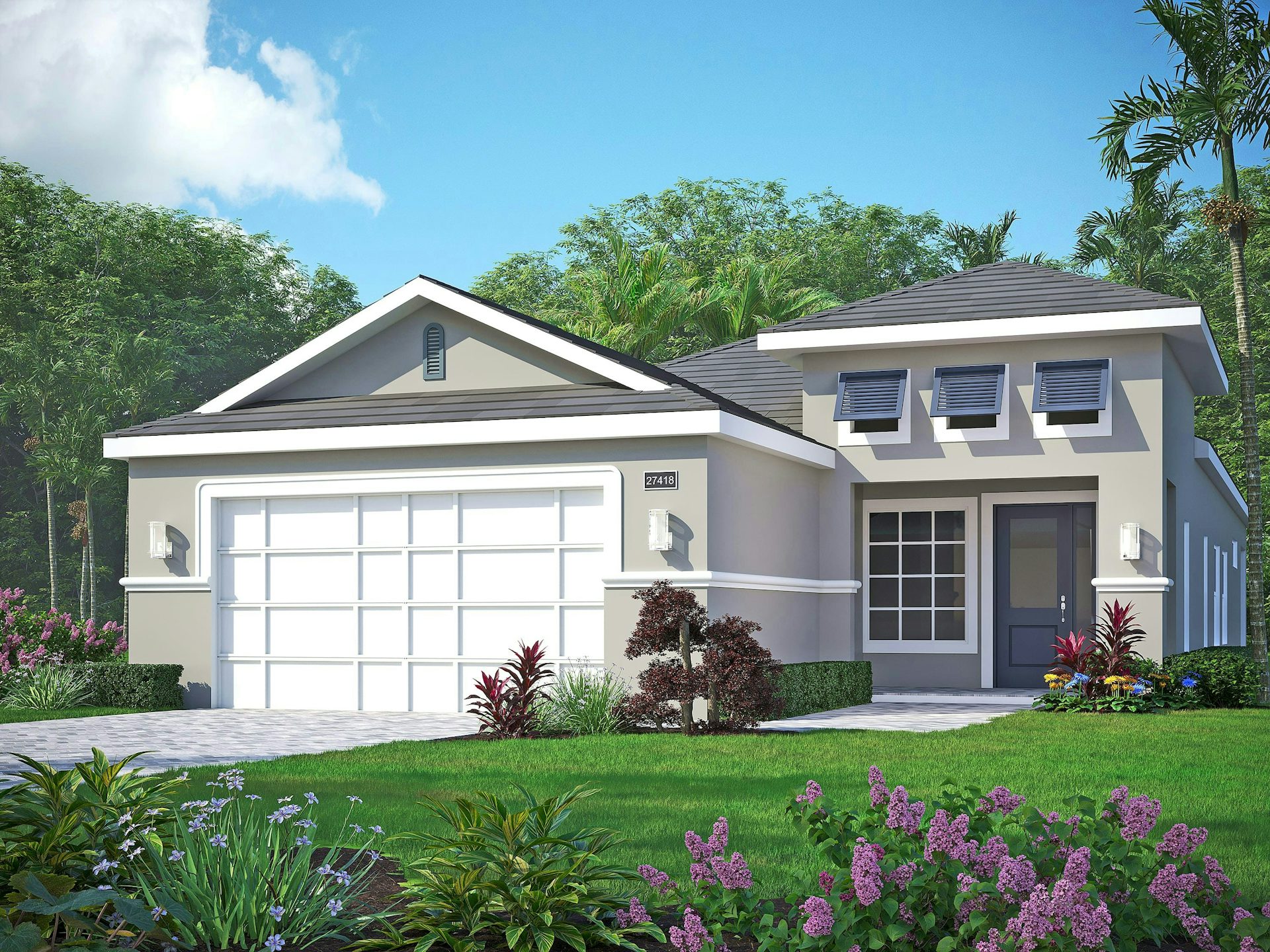 The Mirador Grande Model, based on the award-winning Mirador Plan, is designed for those looking for a bit more space. This home features 3 bedrooms, 3 baths, a den, and a 2-car garage. The island kitchen is expanded to provide additional prep space and storage, quartz countertops, and stainless-steel appliances.