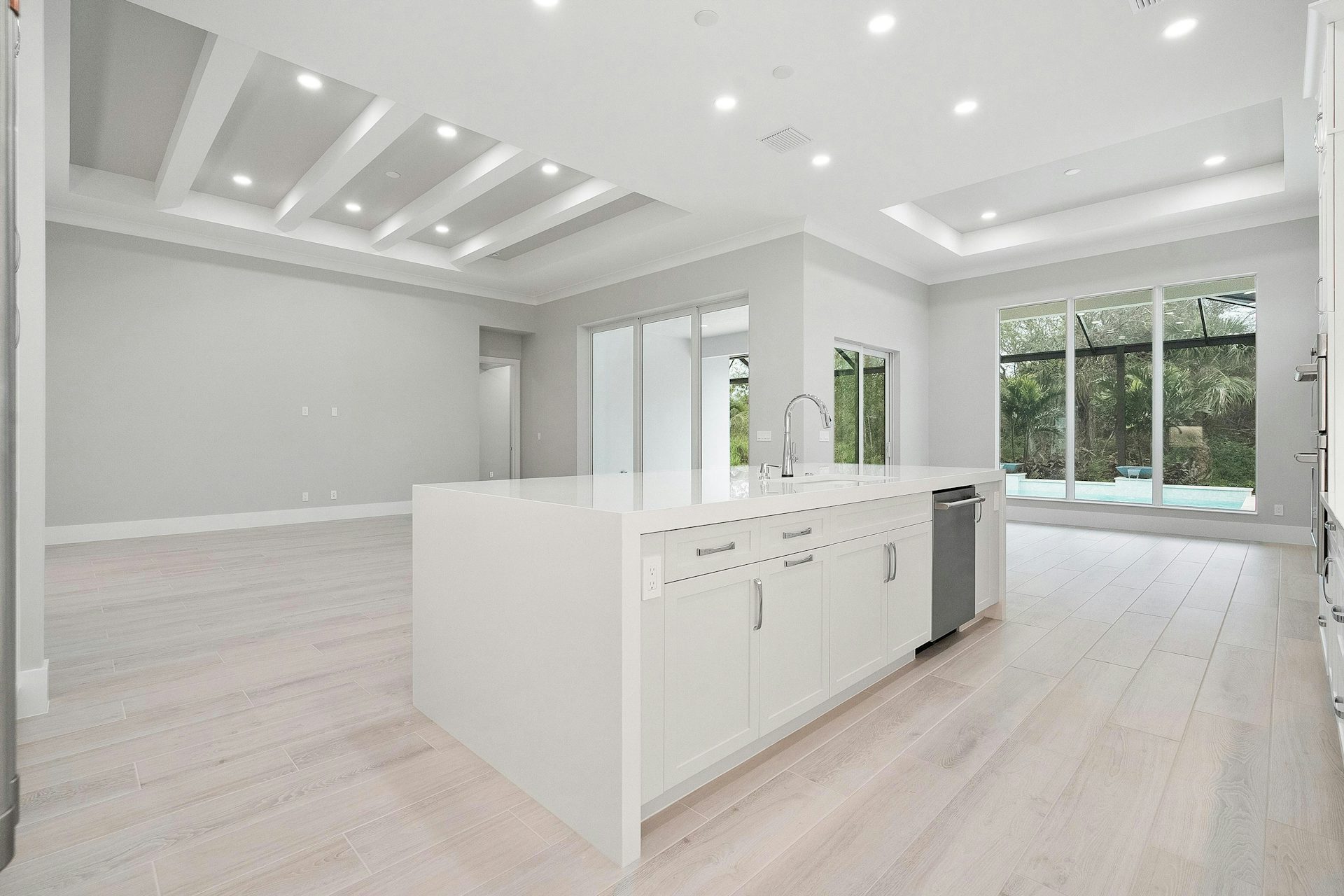 The Somerset floor plan offers 3 bedrooms, 3.5 bath, den and 3-car garage. This thoughtfully designed open concept home provides the best of both worlds, with an expansive great room, kitchen and dining area. As well as private spaces with a den located at the front of the home and the secondary bedrooms, each an en suite and located across the home. The island kitchen is equipped with high-end appliances and ample counter space. The dining room with large windows and a slider enhances the space with a tray ceiling. In the great room the coffered ceiling creates depth to the room, along with a bar and large sliders welcoming more natural light. The lanai runs across the back of the home providing space for relaxing and entertaining.