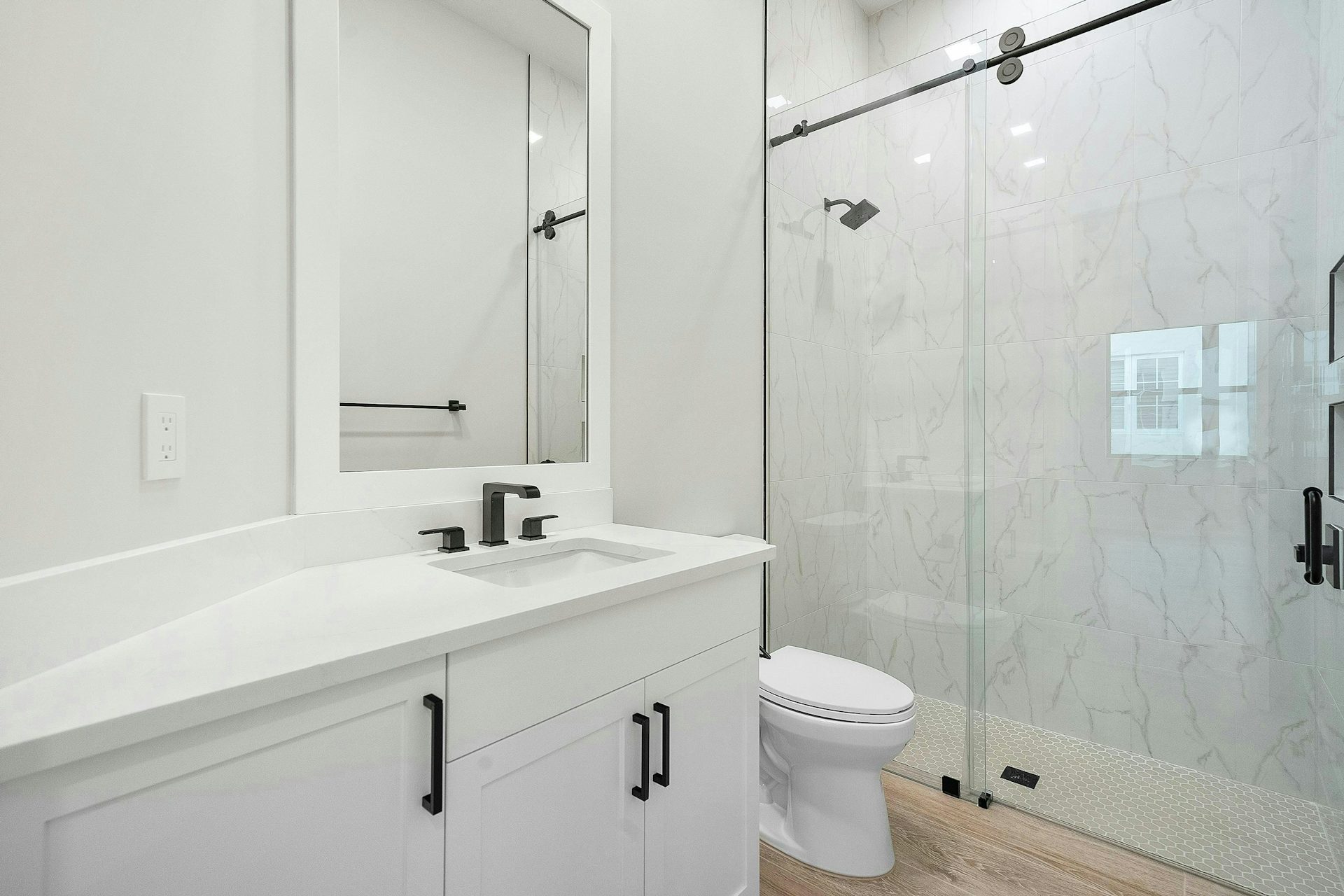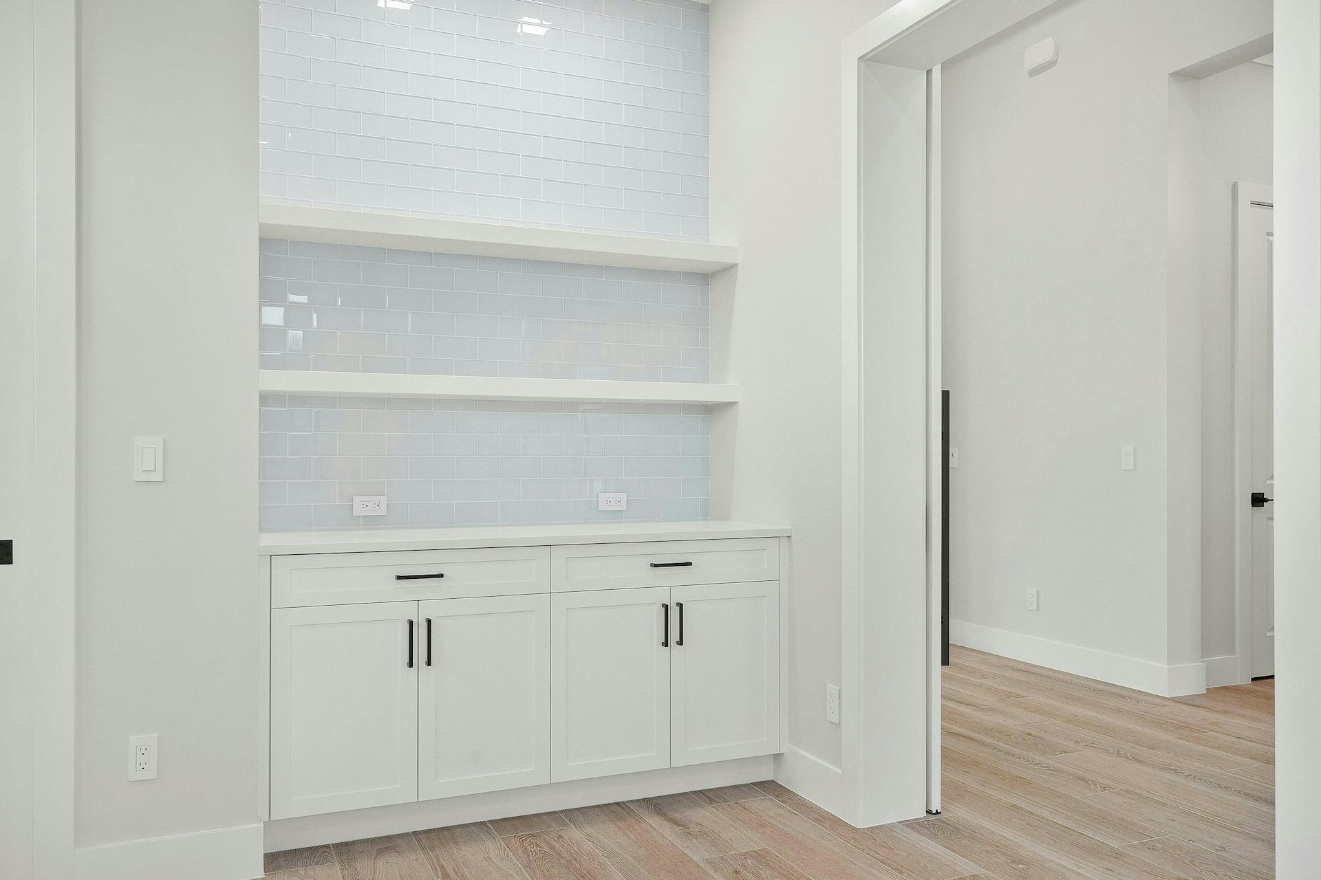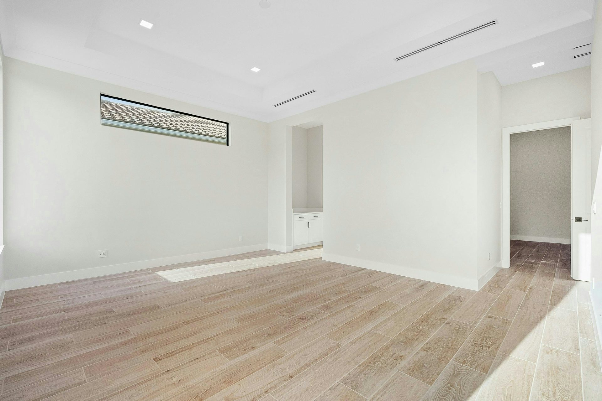 The secondary bedrooms are located at the front of the home, each offering walk-in closets and private baths.