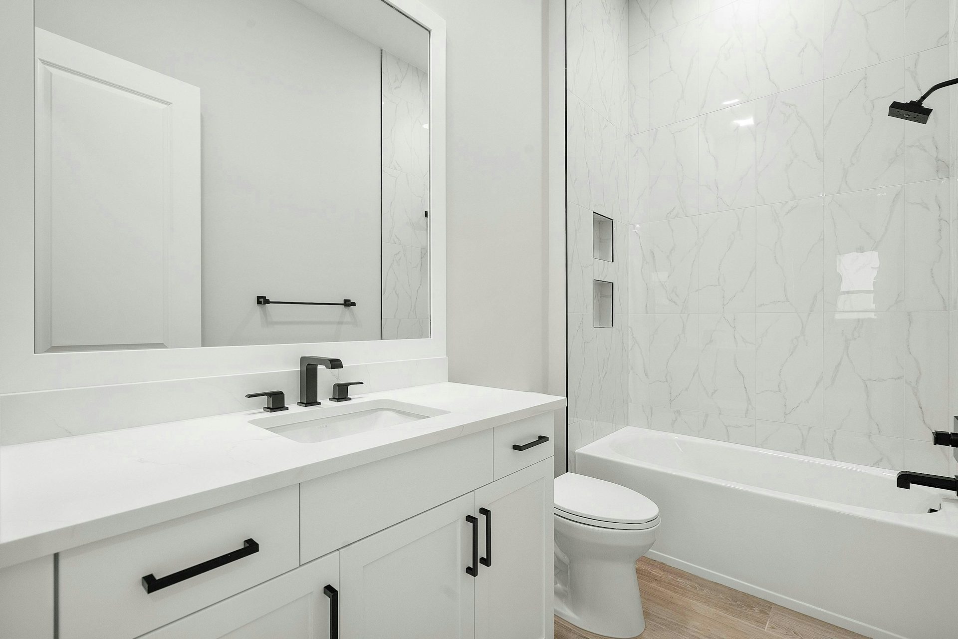 The 3-car garage provides built-in overhead storage, offering ample space for vehicles and additional storage needs.