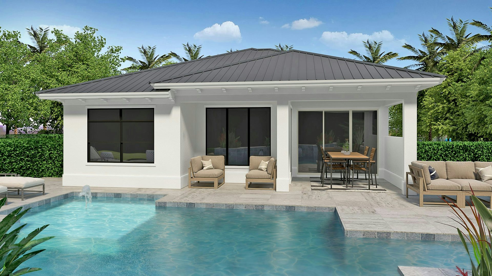 In the heart of the home, the gourmet kitchen is a chef's paradise, equipped with quartz countertops, a stainless-steel appliance package with 42” refrigerator and 36” natural gas cooktop. The large center island is perfect for meal prep and casual dining, making it ideal for culinary adventures and entertaining guests. The adjacent great room offers a comfortable space for relaxation and social gatherings, while the dining area is perfect for family meals and special occasions. Step through the 10-foot sliding door onto the covered patio to enjoy Florida living.