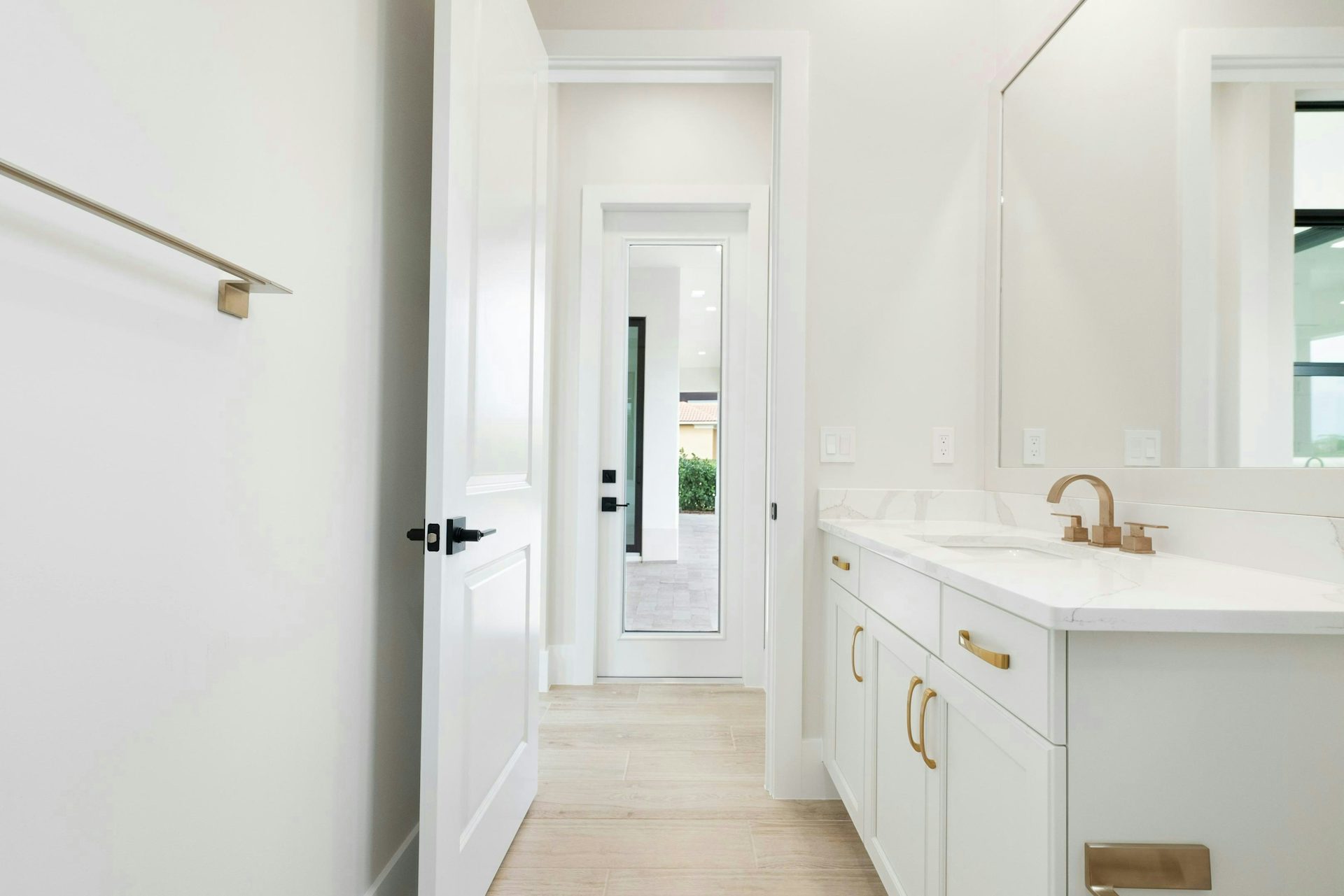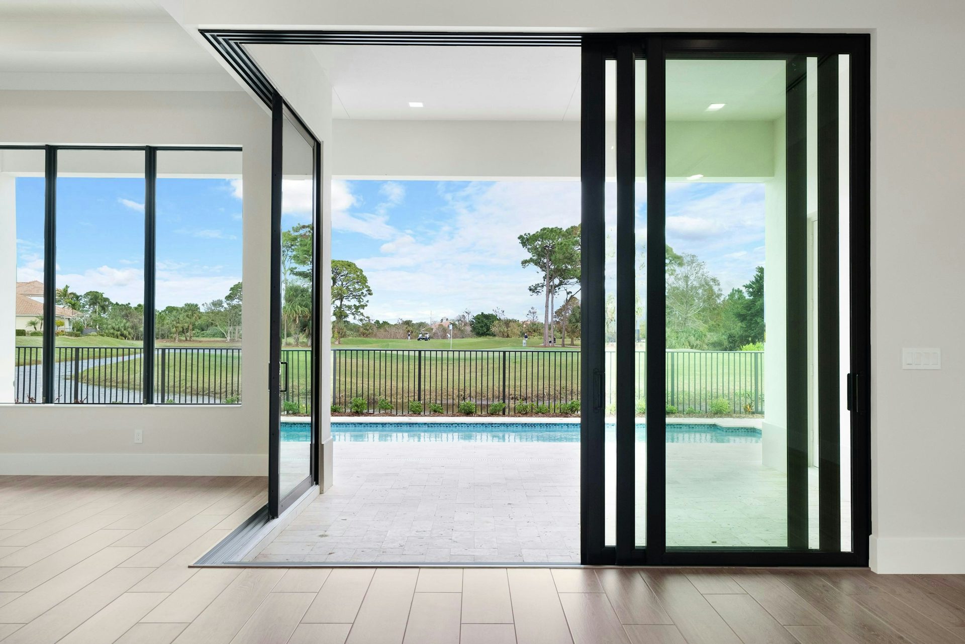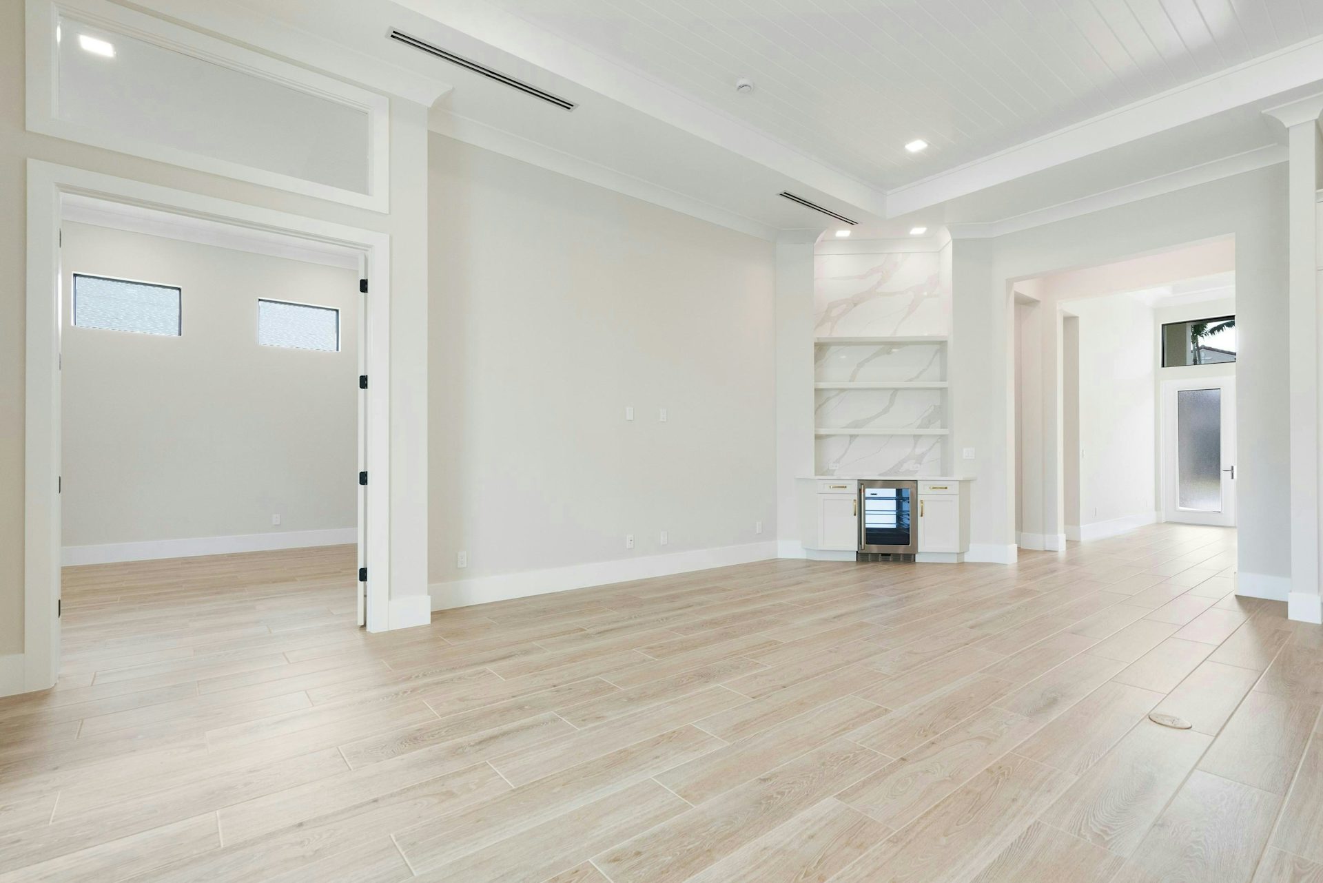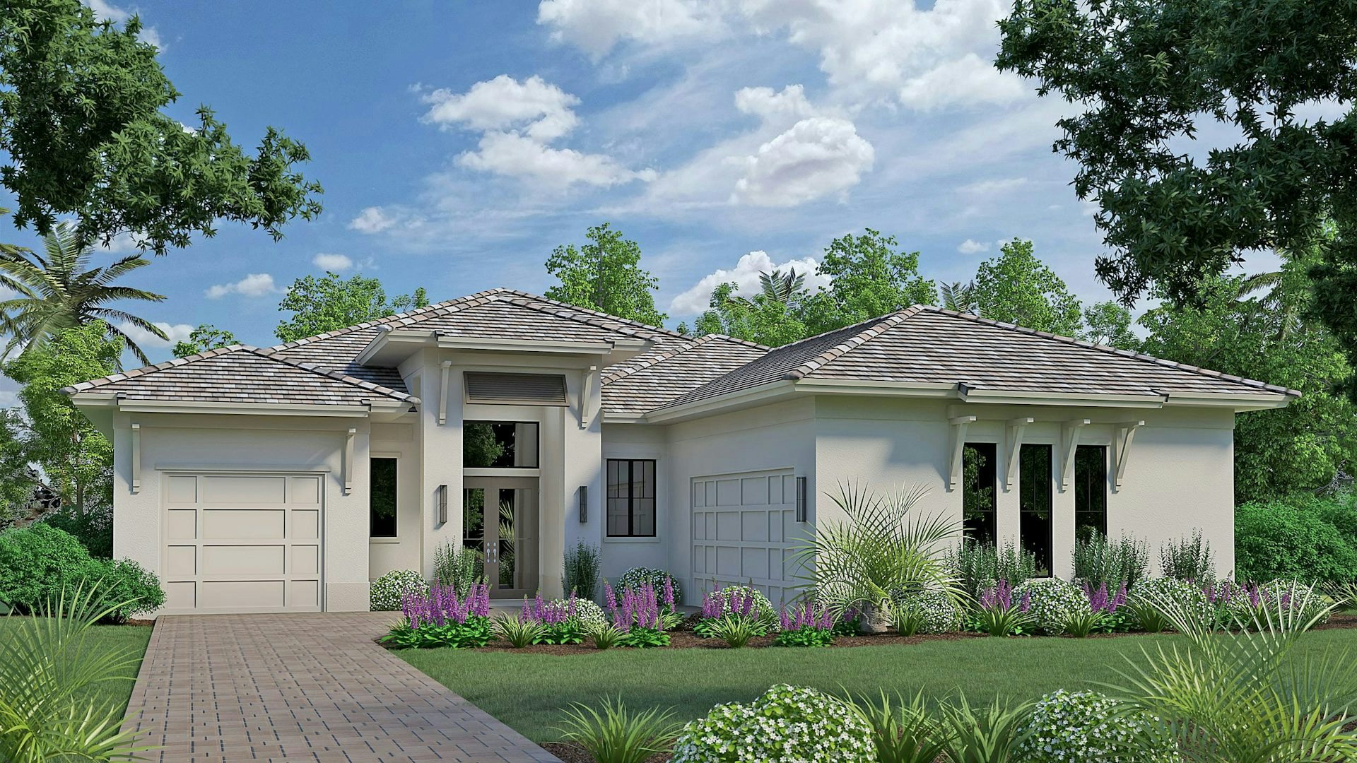 The master suite offers a private sanctuary featuring a private hallway leading to the bedroom, a morning bar, and tray ceiling are thoughtful touches along with a triple slider allowing natural light. The master bath is a retreat with split vanities, a walk-in shower, and two walk-in closets, adding to the elegant feel. The secondary bedrooms are located at the front of the home, each with a sperate bath ensuring privacy for family and guests. The split 3-car garage offers space and storage for vehicles and a golf cart, the 2-car garage is complete with built-in overhead storage.