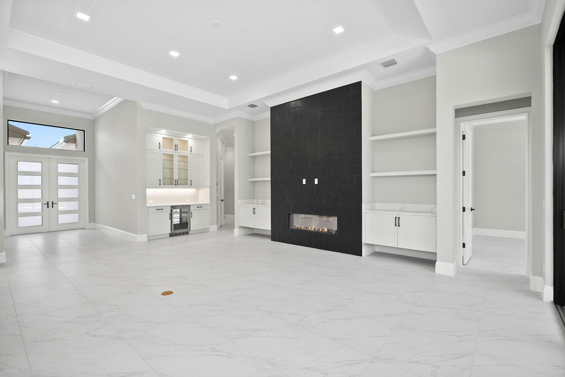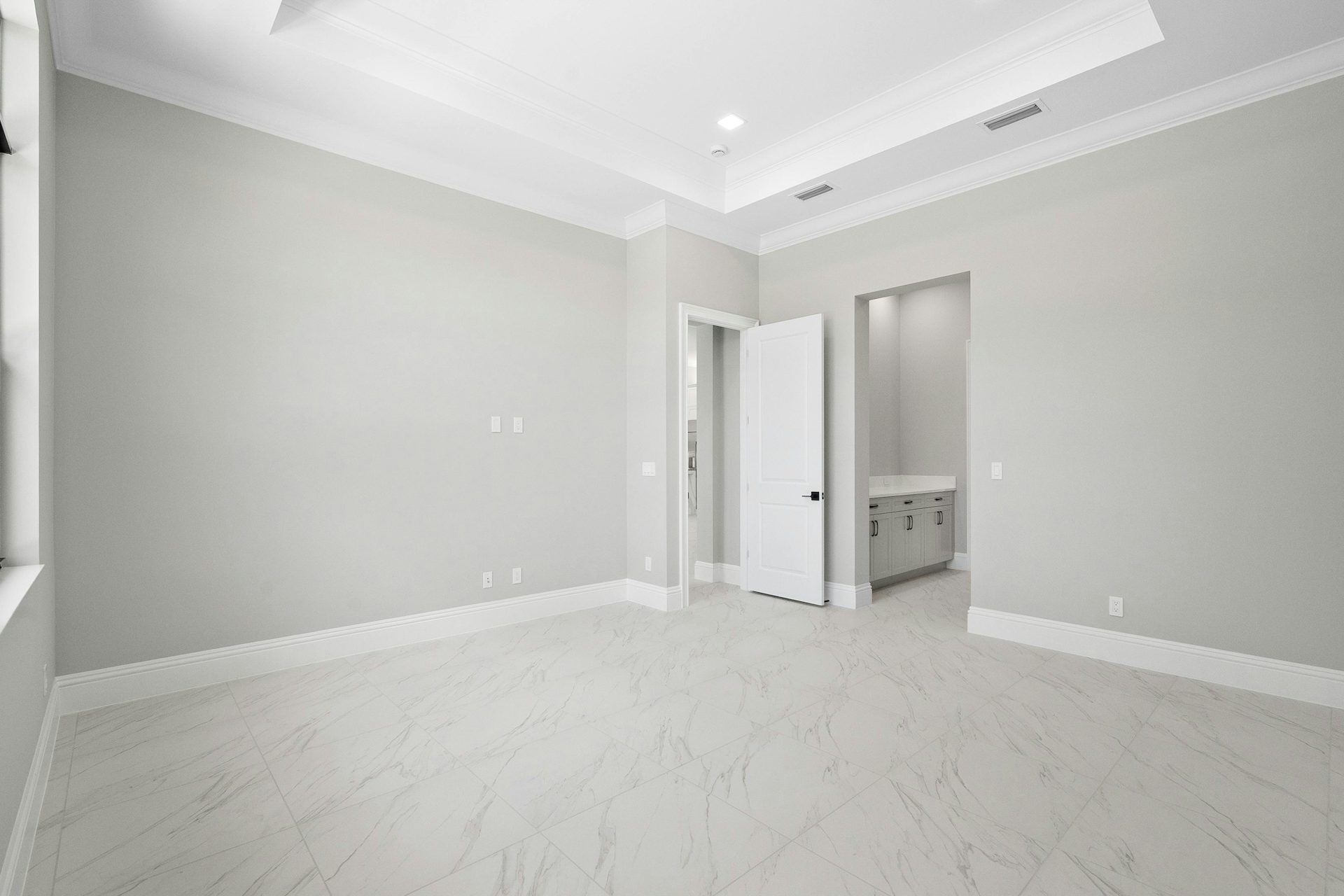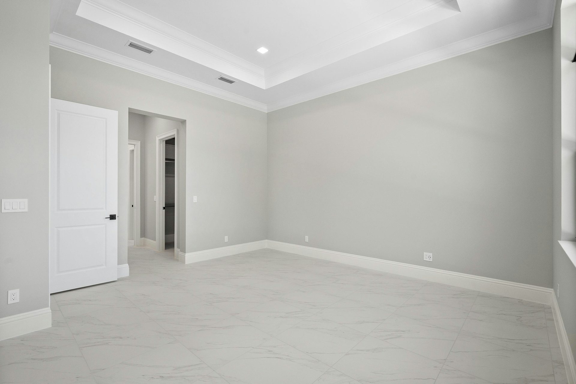 The master suite, conveniently located off the great room, offers a luxurious retreat with a coffee/morning bar. The master bath is complete with split vanities, two substantial walk-in closets and a spacious shower.