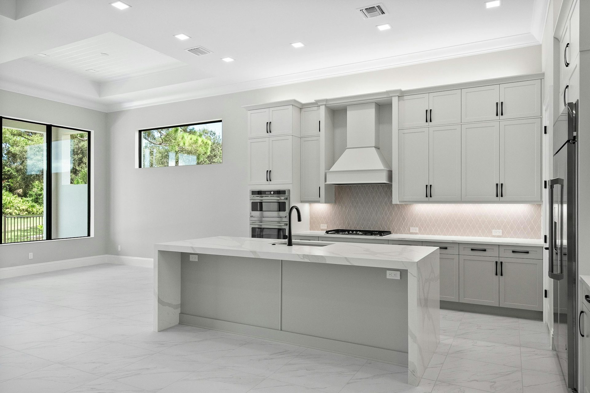 The kitchen is equipped with a generous center island perfect for meal prep and casual dining, a 36” cooktop, with wall oven and microwave, quartz countertops and a large corner walk-in pantry for storage. The great room, adjacent to the kitchen, offers a comfortable space for relaxation and social gatherings, while the dining area is ideal for family meals and special occasions.