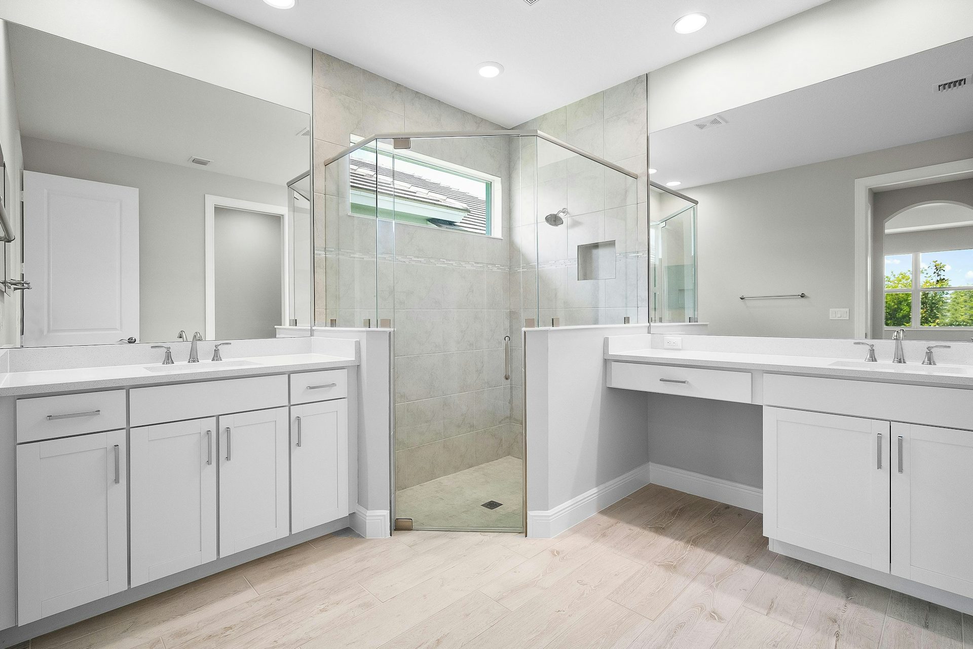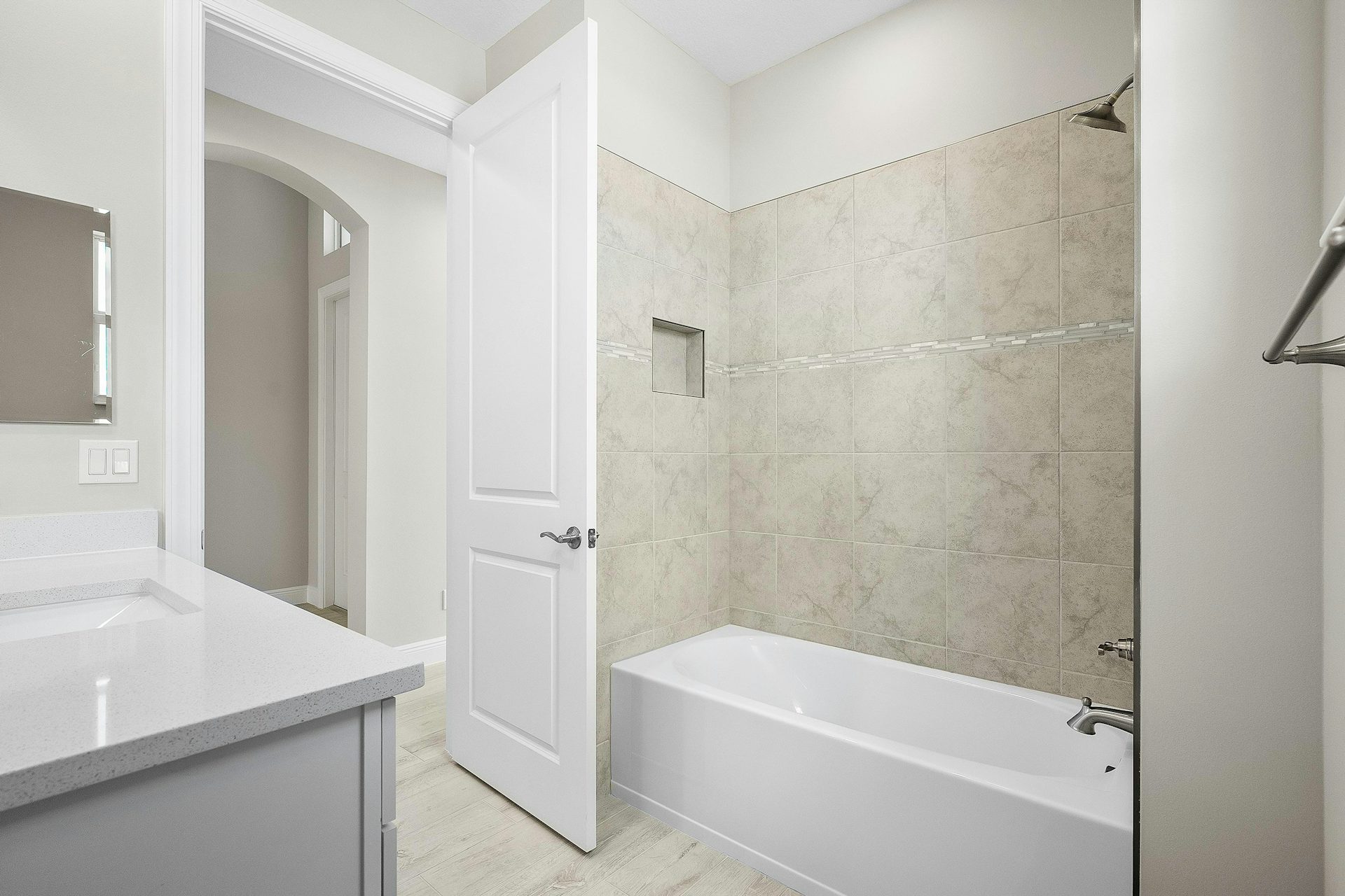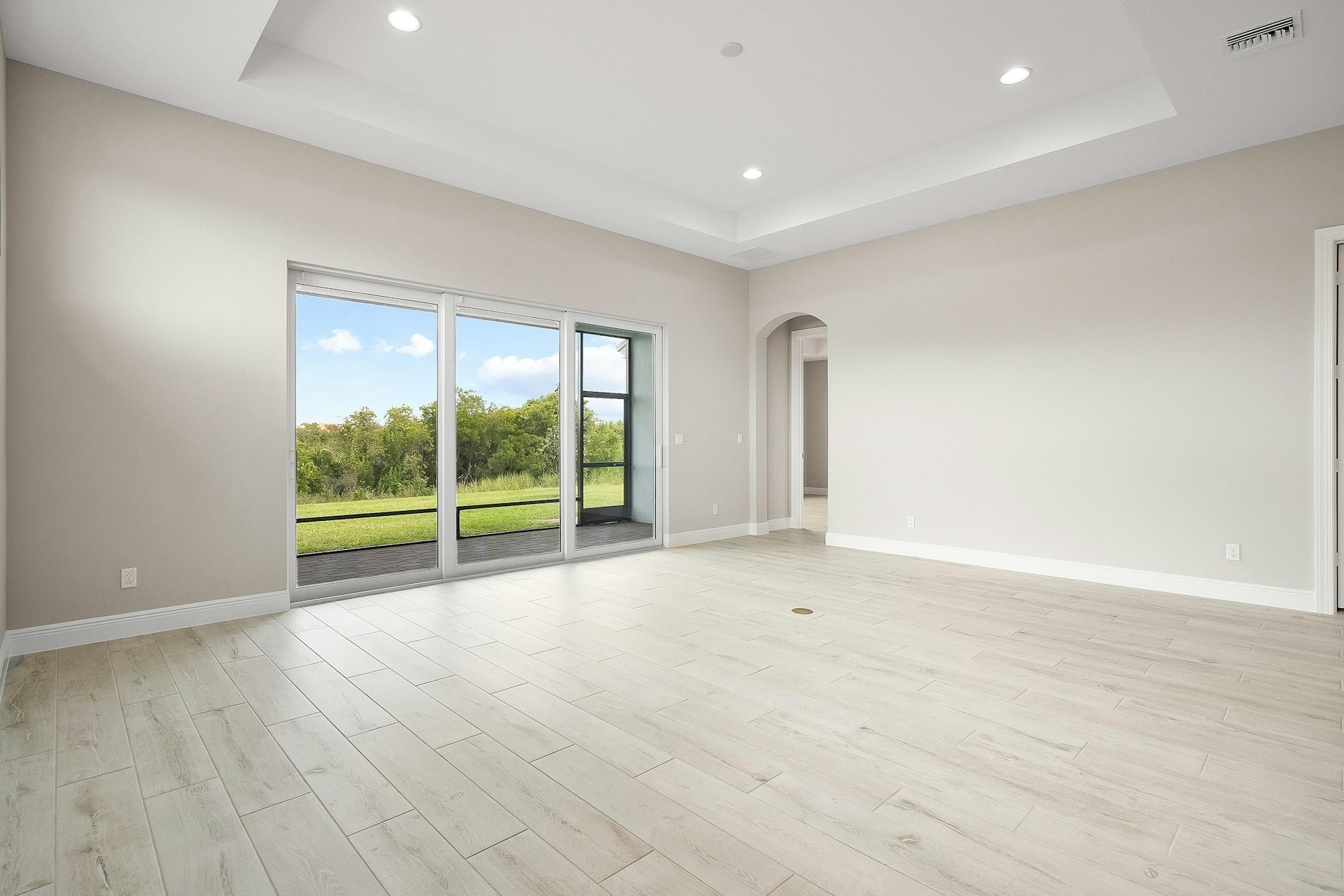 Featuring a Contemporary elevation this 2 bed, 2 bath,2-car garage home has been accented with several upgrades. The kitchen is complete with upgraded quartz countertops and backsplash, over the island 3 jboxes were added for future pendant lights. The bar is finished with a backsplash as well as upper cabinets. Pocket doors have been added to the office. Upgraded porcelain wood plank tile can be found throughout the homes and a floor outlet in great room as well as 4 hi hats plus wall mount TV package have been added for convenience. The garage has a dedicated 20-amp outlet for future refrigerator/freezer. The lanai offers a privacy wall to enjoy the beautiful preserve view.